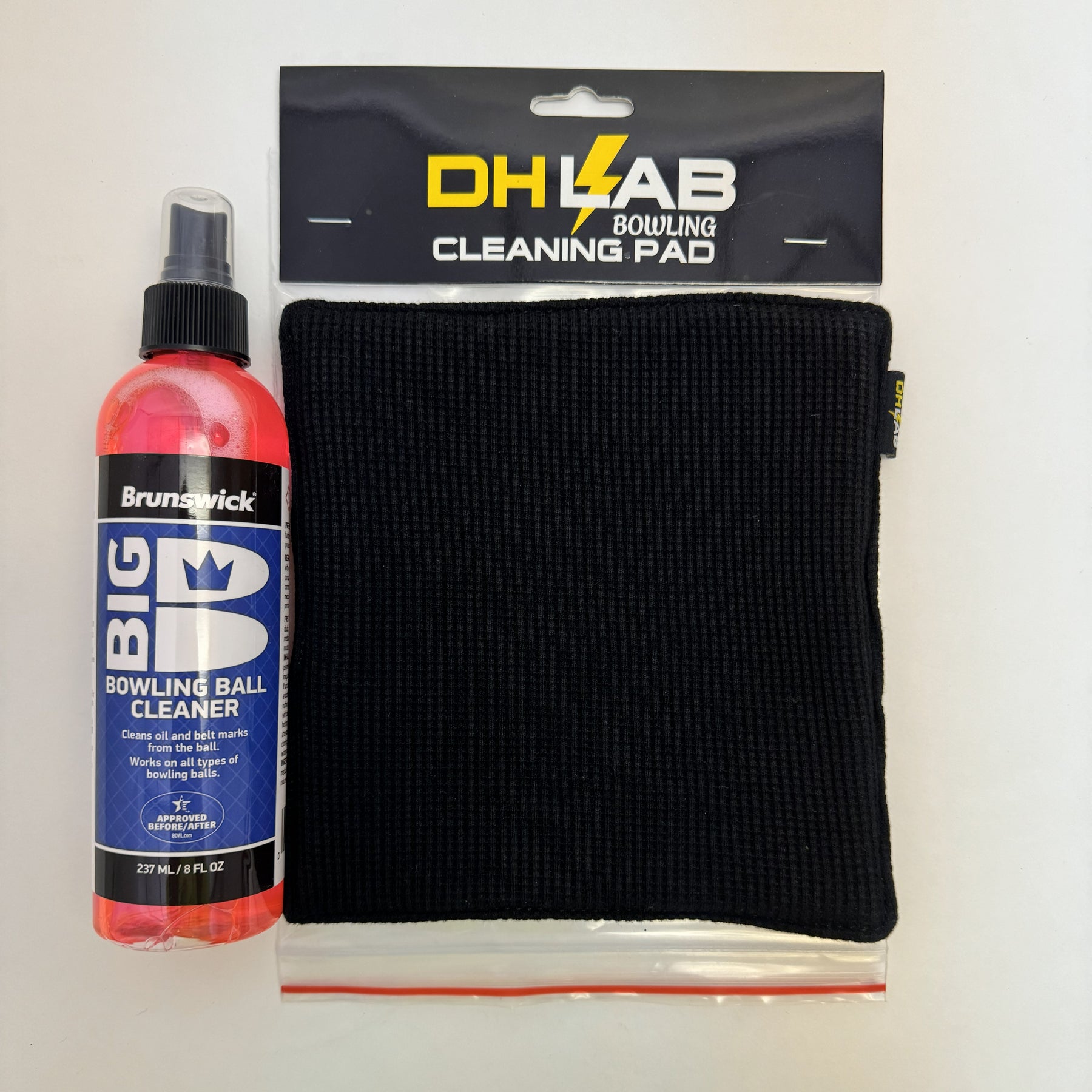 A Bowling Ball cleaning solution designed to remove lane oil, dirt, and buildup more effectively than a cleaner alone. Pairing Brunsick Big B Cleaner with our new DH Lab Microfiber Cleaning Pad ensures even pressure, better coverage, and consistent results on every clean.